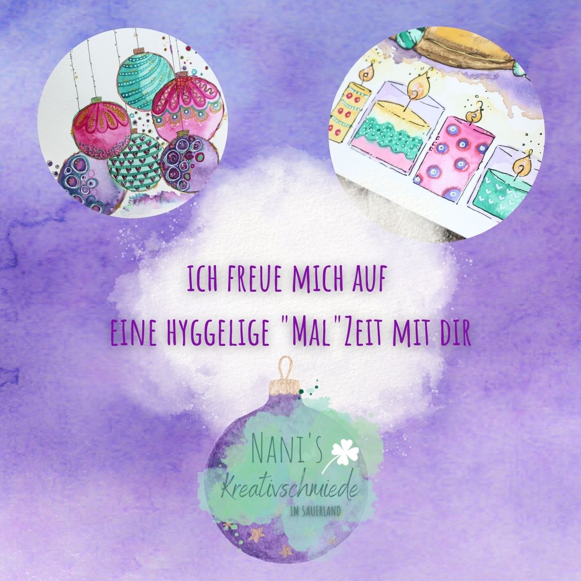 Auf dem Blatt Papier bringen wir mit einfachen Methoden den Winter und die Weihnachtszeit zum Strahlen und werden mit Hilfe von bunten Farben, spannenden Aquarelltechniken, unterschiedlichen Stiften und einfachen Umsetzungsmöglichkeiten am Kreativtisch ganz wunderbare, intuitive Werke entstehen lassen. Diese darfst du nach Herzenslust verschenken oder dein zu Hause damit „hyggelig“ schmücken.