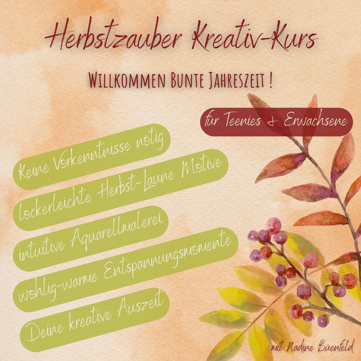Auf dem Blatt Papier bringen wir mit einfachen Methoden den Herbst zum Strahlen und werden mit Hilfe von bunten Farben, spannenden Aquarelltechniken, unterschiedlichen Stiften und einfachen Umsetzungsmöglichkeiten am Kreativtisch ganz wunderbare Werke entstehen lassen, die auch dein zu Hause ein Herbst-Krönchen aufsetzt.