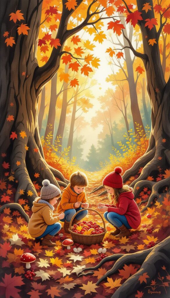 – Sammle Herbstschätze: Geh raus, entdecke und sammle schöne Blätter, Früchte, Kastanien, Eicheln, Filz, Hölzer oder andere Naturmaterialien, die dich ansprechen.